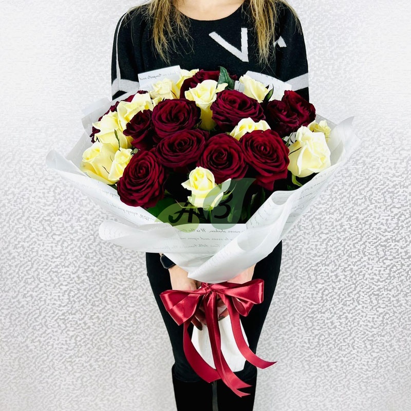 Букет красных и белых роз в одном букете
