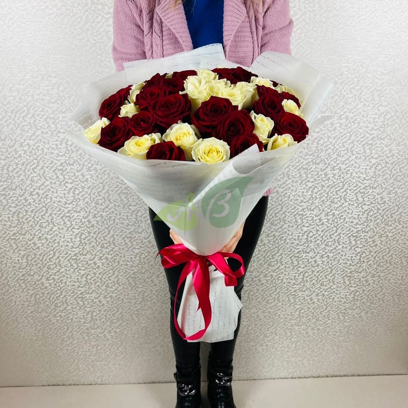 Букет "Красные и белые розы" - 60 см