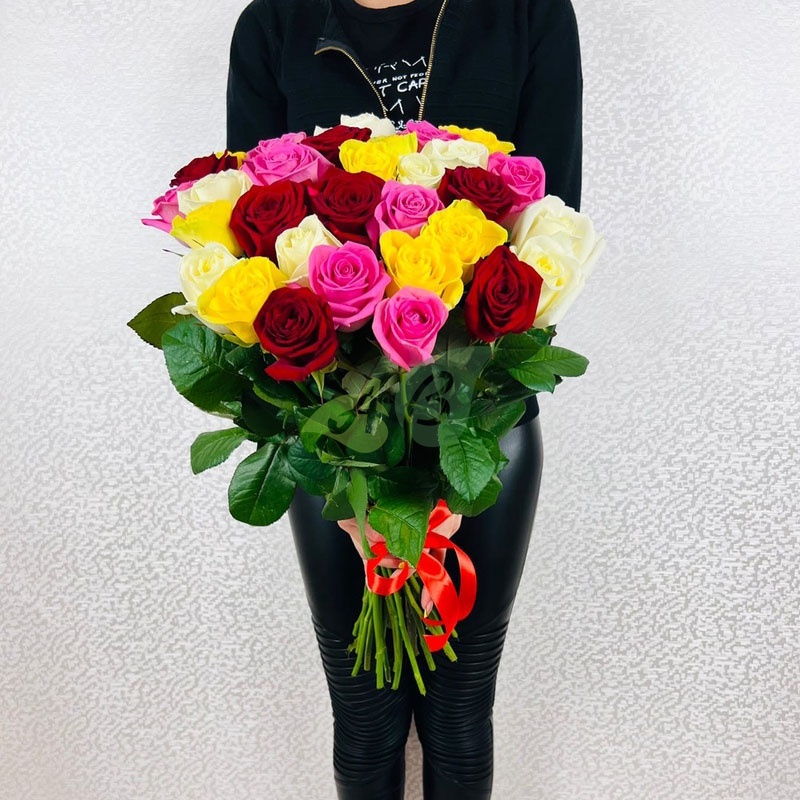 Яркий, эффектный, пышущий жизненной энергией и страстью букет из разноцветных роз – это прекрасный подарок к любому событию! А Ваша возлюбленная будет в восторге получив такой букет в качестве признаний нежных и горячих чувств.