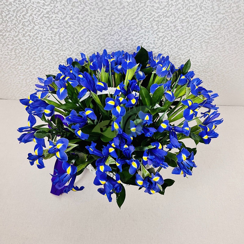 Красочные ирисы в корзине напоминают ночное небо летом. Эта композиция создана для того, чтобы дарить ее любимой маме, сестренке, бабушке или дорогому папе. Ирисы универсальные цветы, которые придутся по вкусу всем.