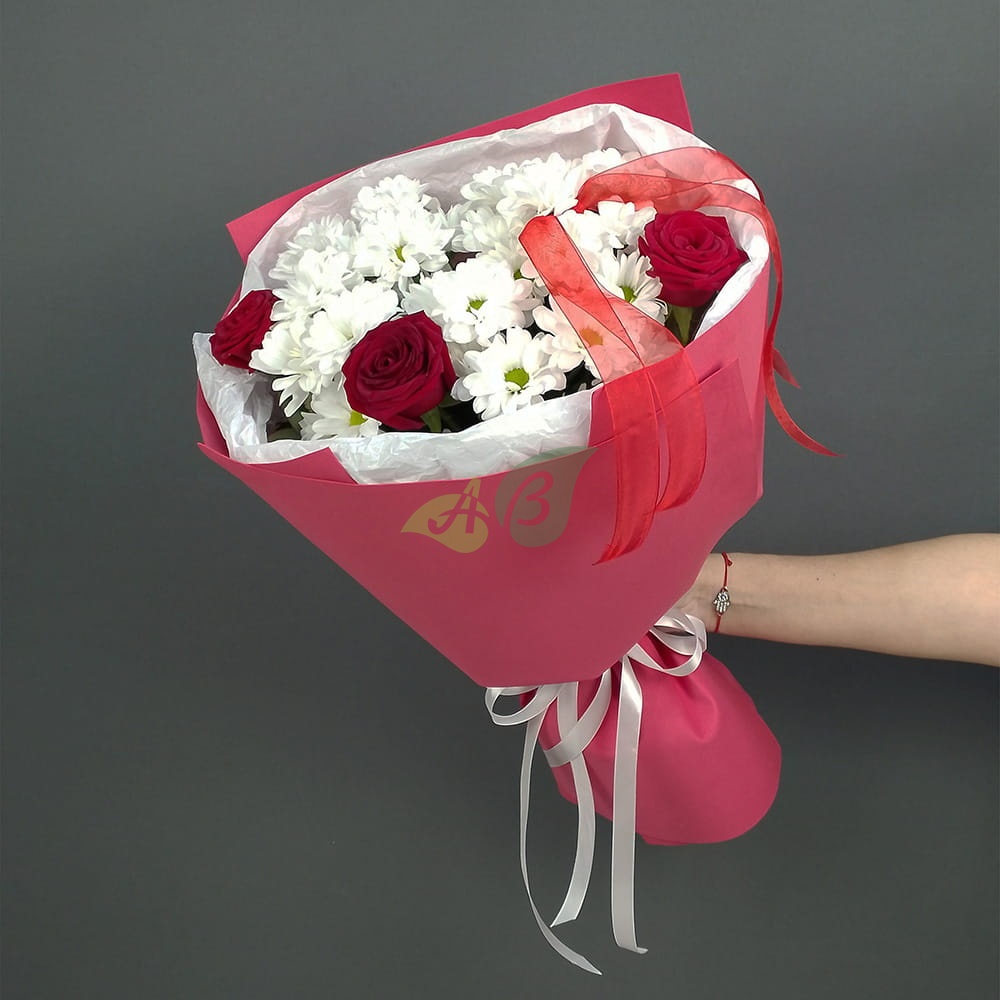 Состав и характеристики букета из роз и хризантем "Желанная":